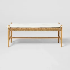 Corallina Upholstered Wooden Ottoman Natural Wood/Dark Brown – Threshold™ Designed With Studio McGee
