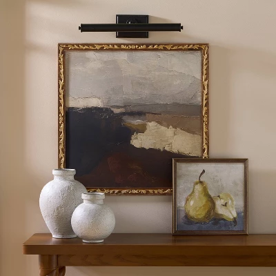 Enhance the visual appeal of your favorite paintings or photos with this Picture Lamp from Threshold™ designed with Studio McGee. Made of metal, this sleek picture lamp projects the light onto your wall decor, accentuating its appearance. It comes with a non-removable integrated bulb with a one-way setting that can be turned on and off by the included remote control for ease of use and requires hardwired installation.